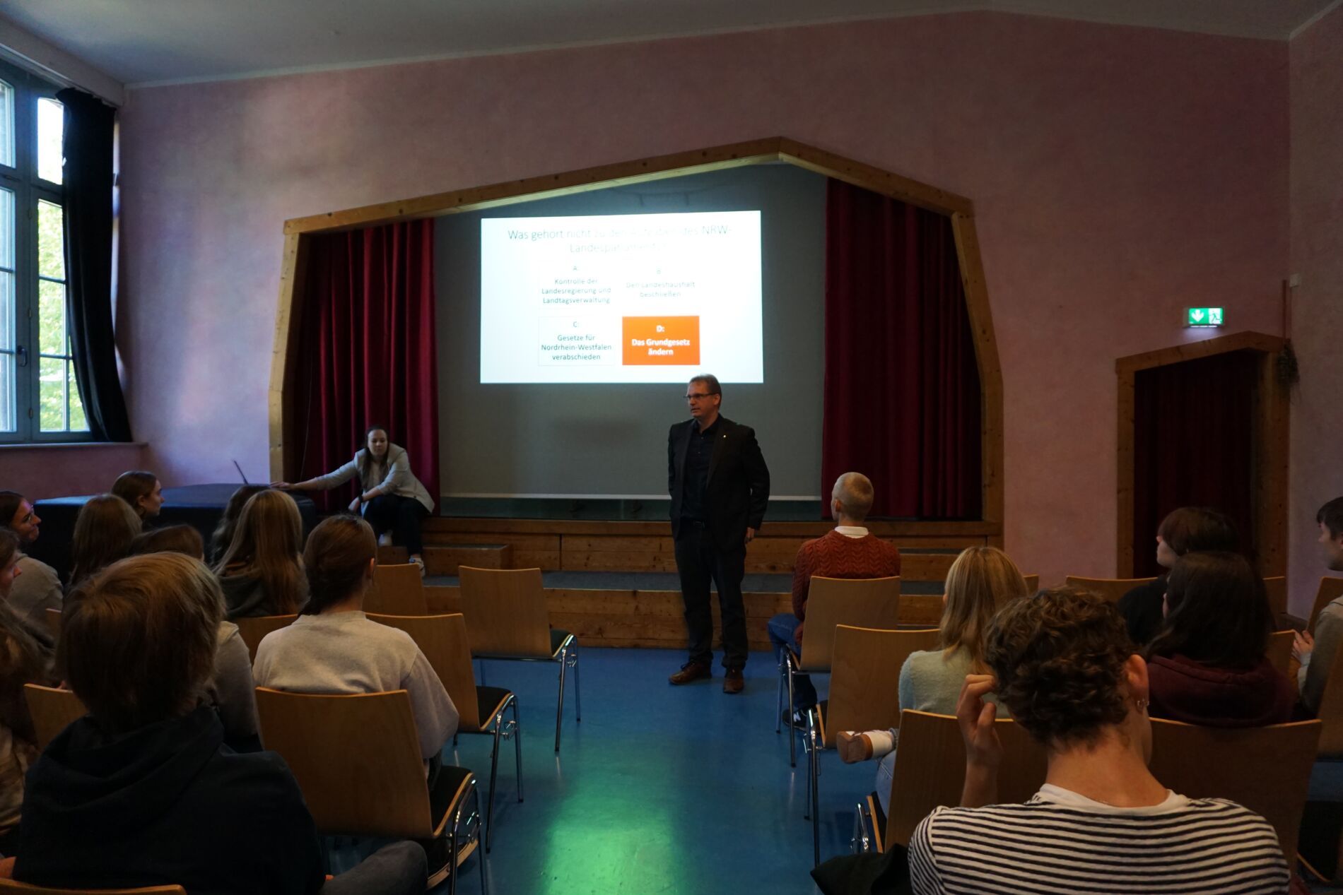 Anlässlich des landesweiten „Tags der Freien Schulen“ besuchte der SPD-Landtagsabgeordnete Dennis Maelzer die Freie Waldorfschule Lippe-Detmold. Der Termin begann in der dritten Unterrichtsstunde mit einem Quiz rund um den nordrhein-westfälischen Landtag. Dabei testete Maelzer das politische Wissen der Schülerinnen und Schüler. Gefragt wurde unter anderem, wonach sich die Mehrheitsverhältnisse im Landtag richten und welche Aufgaben das Landesparlament wahrnimmt. Die Jugendlichen zeigten sich gut vorbereitet und konnten mit fundierten Antworten punkten.