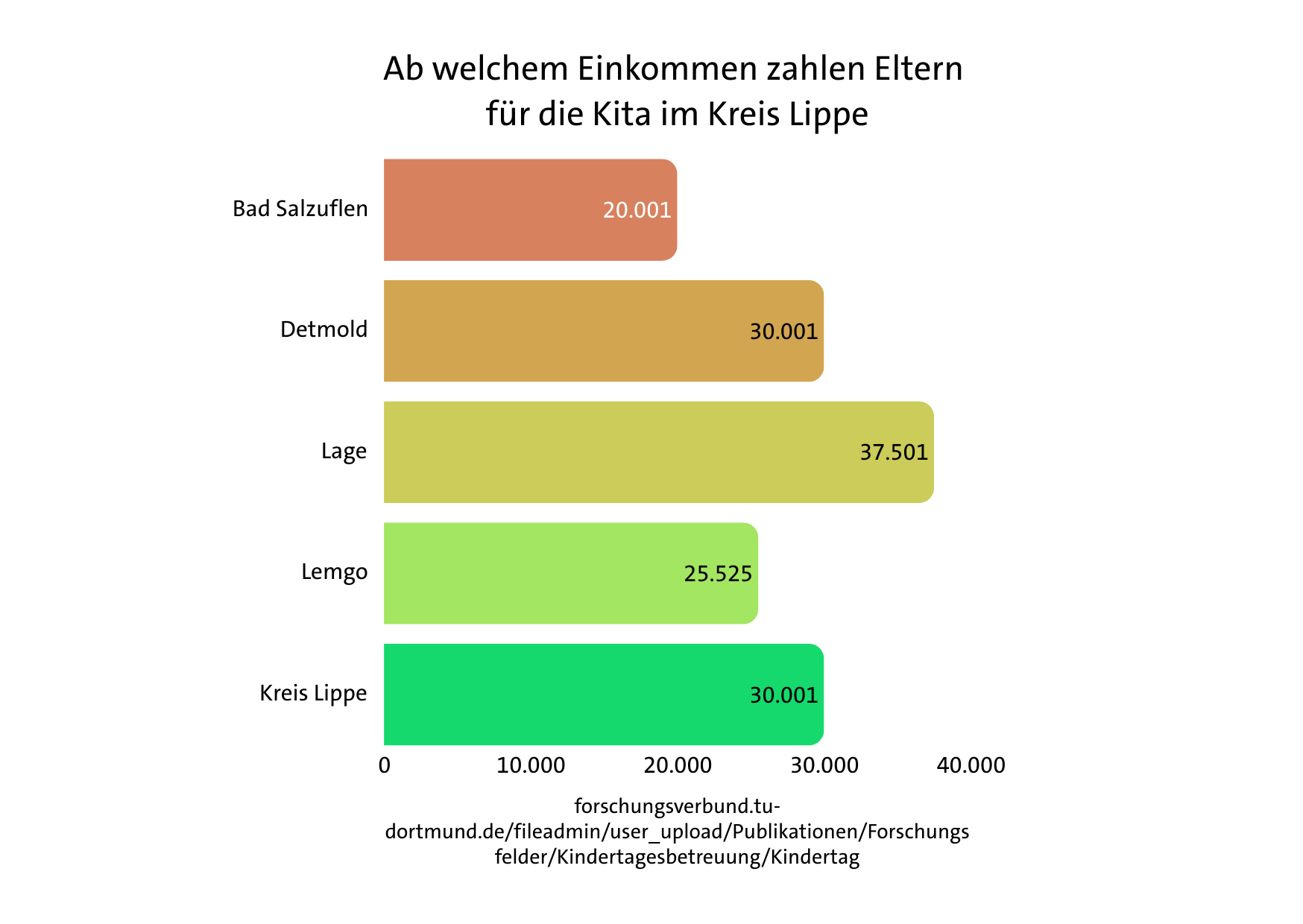 „Auch in Lippe gibt es einen Flickenteppich“, sagt Maelzer. Während in Bad Salzuflen Eltern bereits ab 20.001 Euro Jahreseinkommen zahlen, liegen die Zahlen in Detmold und beim Kreis Lippe bei 30.001 Euro, in Lage ab 37.501 Euro. Auch innerhalb der Gebührentabellen gibt es in Lippe Unterschiede von teilweise mehreren hundert Euro im Monat.