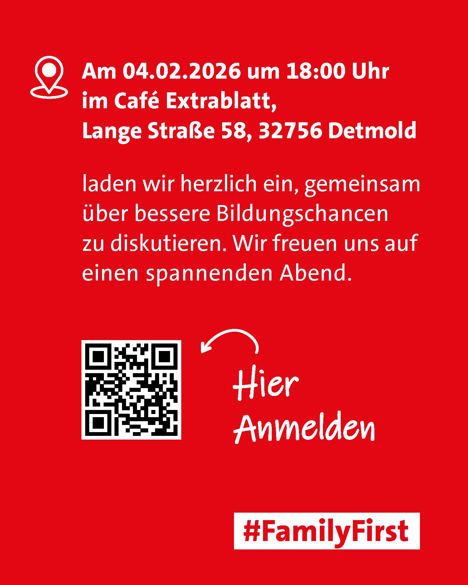 Unter dem Titel „Elternabend – Nicht in Schule, aber mit Blick auf die Zukunft der Bildungspolitik in NRW“ veranstalten die SPD-Landtagsabgeordneten Dr. Dennis Maelzer und Frank Müller einen offenen Austausch am Mittwoch, den vierten Februar im Café Extrablatt in Detmold. Um mit Eltern und Fachkräften aus der Praxis ins Gespräch zu kommen sind alle Interessierten ab 18 Uhr eingeladen.
